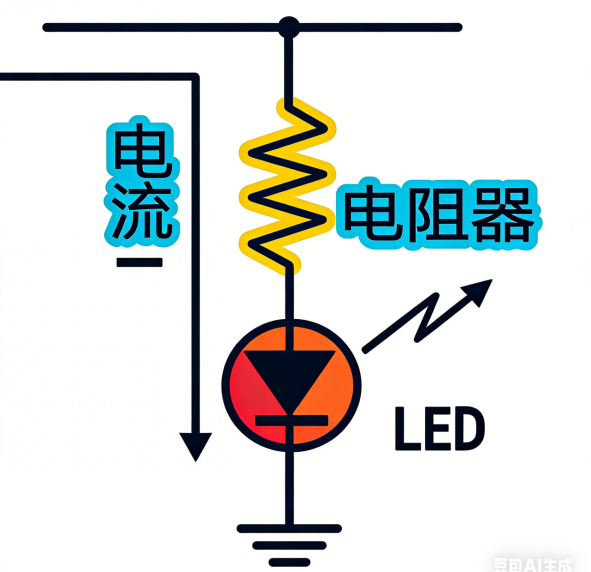 电阻可以将电子电路的电流控制在额定值以下。譬如LED电路,通过与LED串联连接电阻,将电流控制在额定值以下,就可以防止LED烧坏。