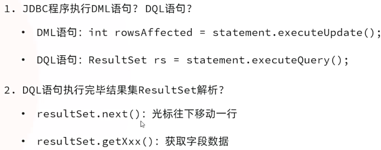 **ResultSet(结果集对象):**ResultSet rs = statement.executeQurey()