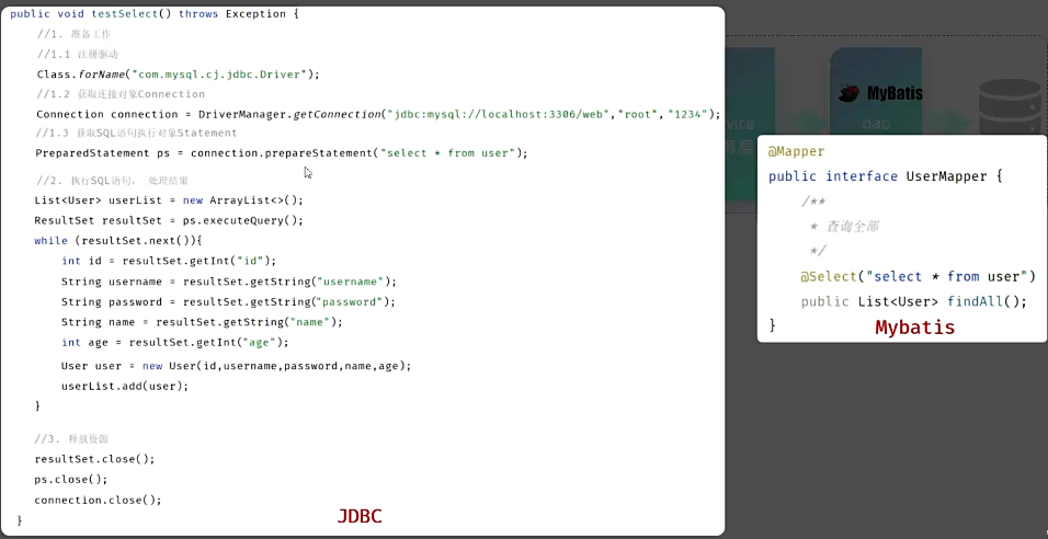 [JDBC VS Mybatis](#JDBC VS Mybatis)