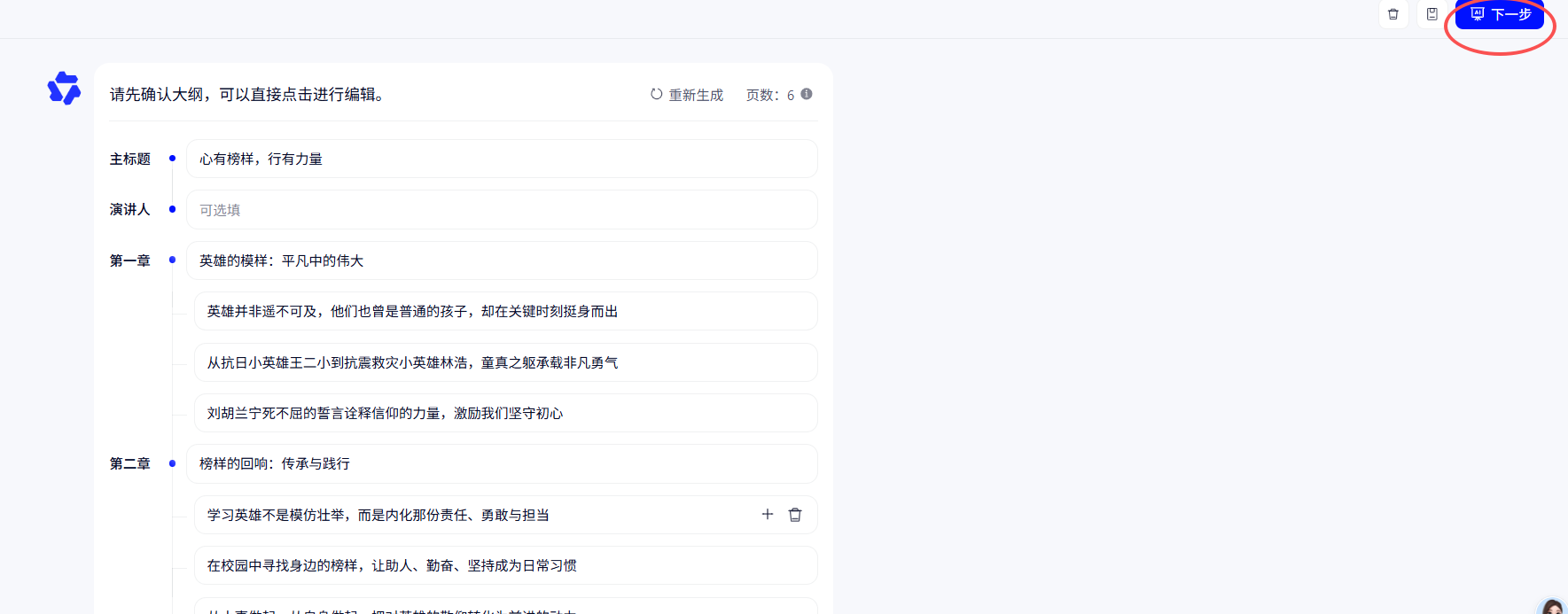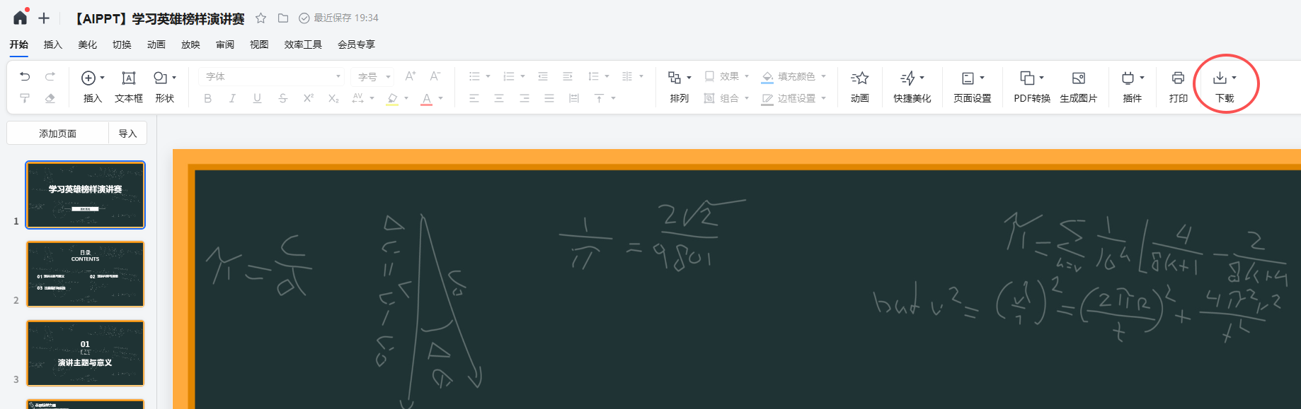 3,点击生成完整ppt,然后等待生成完成,下载即可;