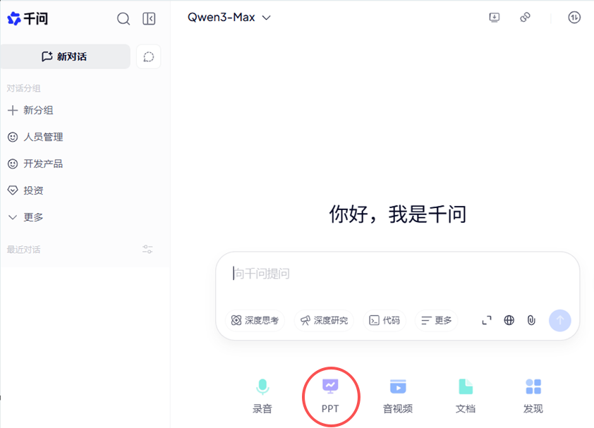 2.1,登录通义千问,点击新对话,选择ppt