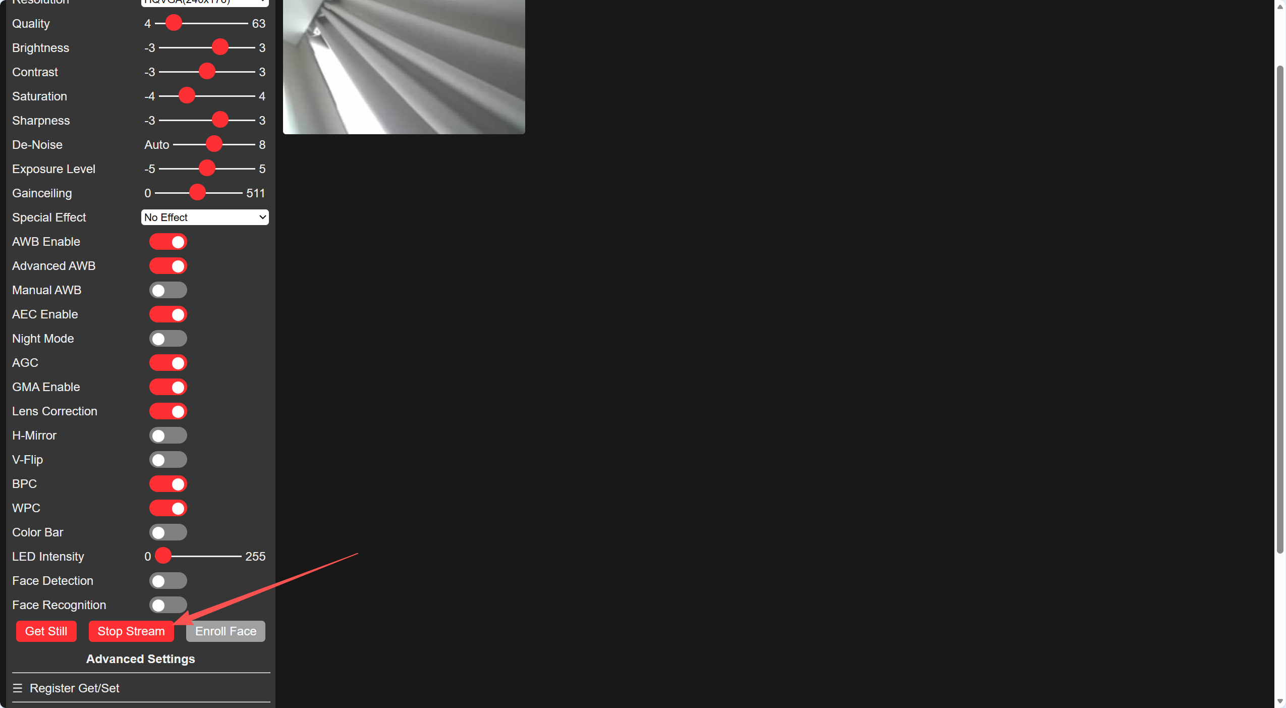 - 点击下图中"Start Stream"/"Stop Stream"可以接收视频/停止视频