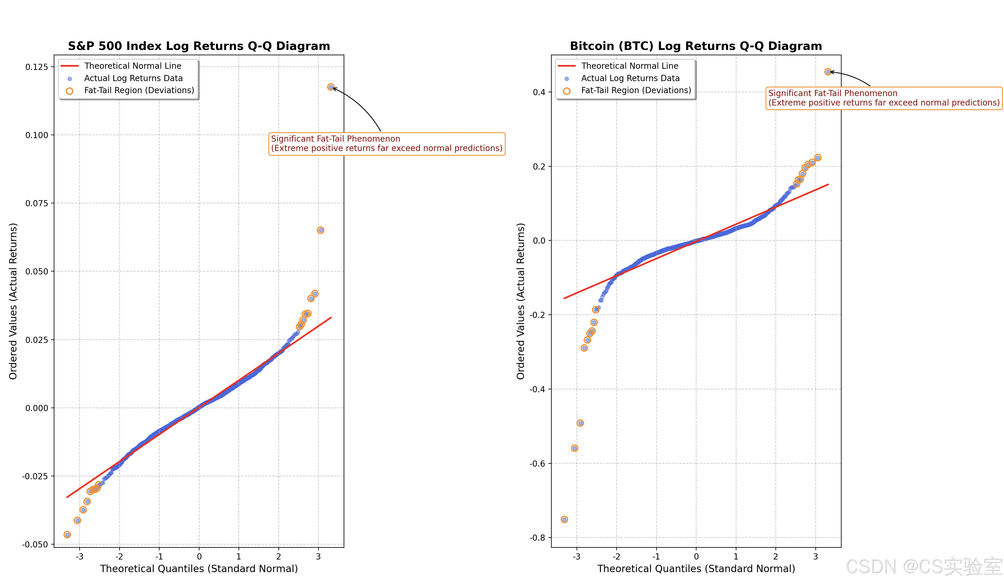 ax.annotate('Significant Fat-Tail Phenomenon\n(Extreme positive returns far exceed normal predictions)',
