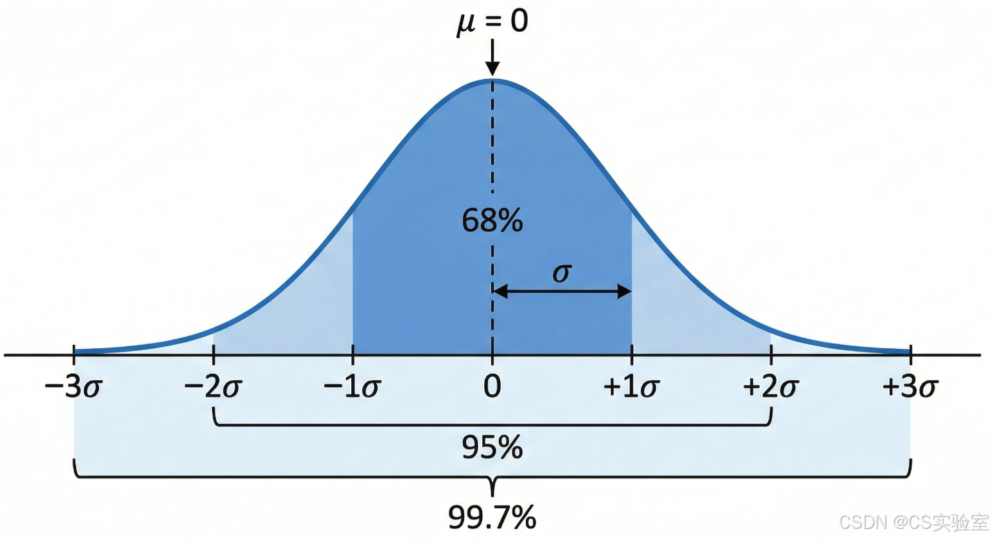 P(∣X∣≤1)≈68.27%,P(∣X∣≤2)≈95.45%,P(∣X∣≤3)≈99.73% P(|X| \leq 1) \approx 68.27\%, \quad P(|X| \leq 2) \approx 95.45\%, \quad P(|X| \leq 3) \approx 99.73\% P(∣X∣≤1)≈68.27%,P(∣X∣≤2)≈95.45%,P(∣X∣≤3)≈99.73%