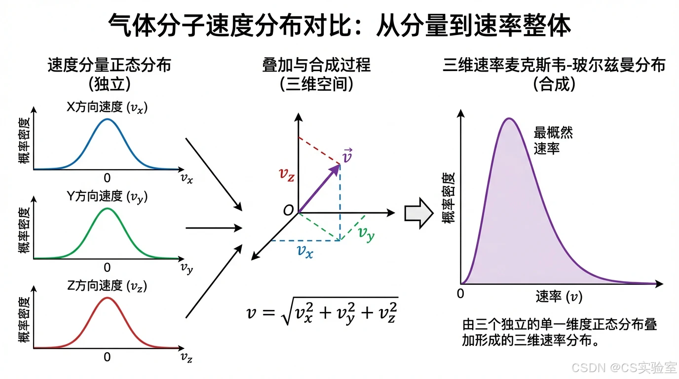从物理学的角度看,正态分布的普遍性也体现了能量分布的均衡性。例如,麦克斯韦-玻尔兹曼分布表明,气体分子的速度分量独立服从正态分布,这是因为分子在热运动中不断与周围分子碰撞,每次碰撞都会改变其速度分量,这些微小的改变累积起来形成了正态分布 。