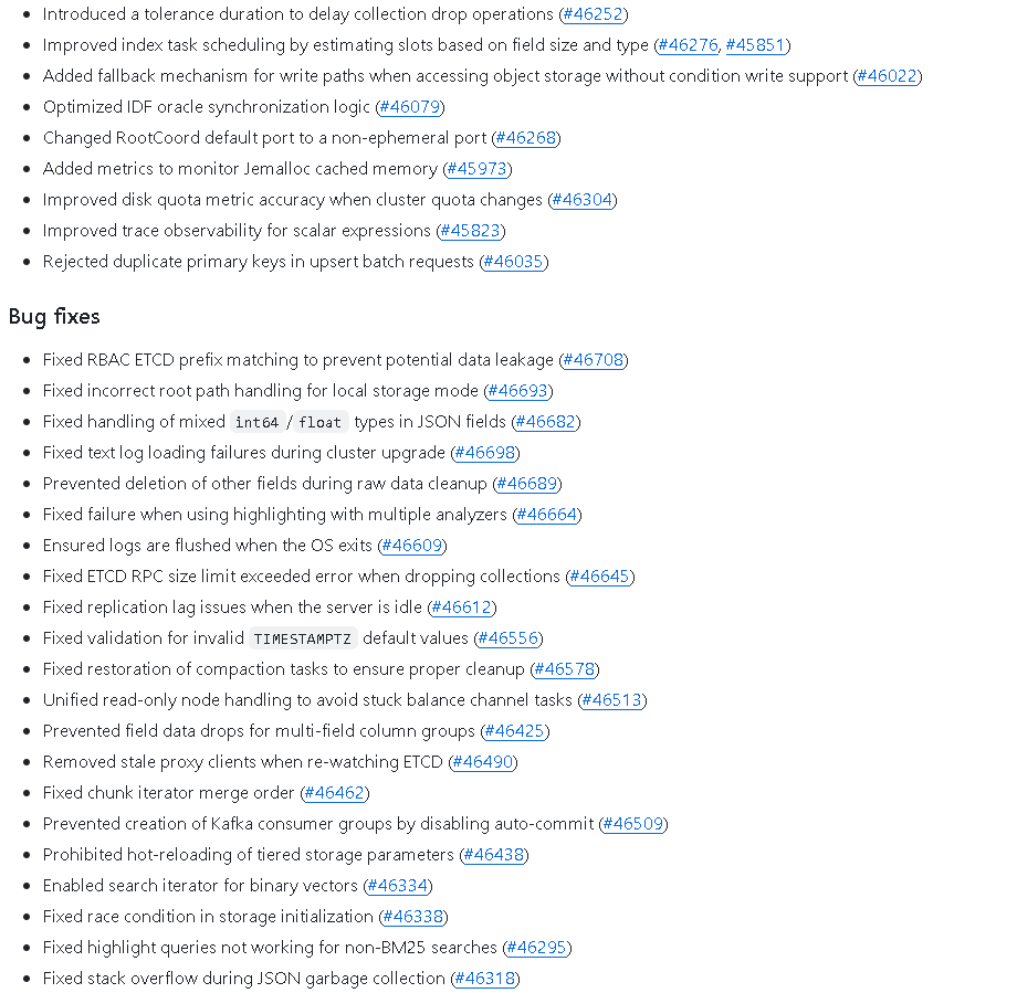 此外,本次版本修复了多个与数据安全、存储处理和并发相关的关键缺陷。官方强烈建议所有用户升级至该版本,以获得更加高效、可靠的生产运行环境。