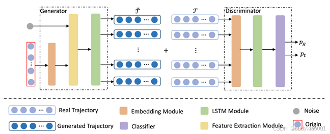 1、设计了一种基于生成对抗网络(GAN)的轨迹生成模型TrajGAN作为基准模型,该模型能够生成相似的轨迹;