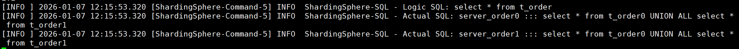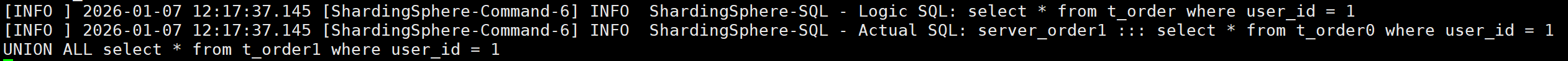 可以看出 ShardinSphere 在所有的数据节点查询记录,并把各个节点的记录组装好,统一返回给客户端。