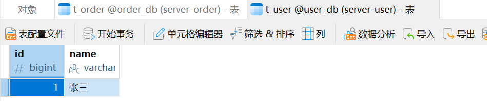 我们预期的结果是在 ShardingSphere 中插入数据,往t_user 表中插入的数据会放到 server_user 中,往 t_order 表中插入的数据会放到 server_order 中。