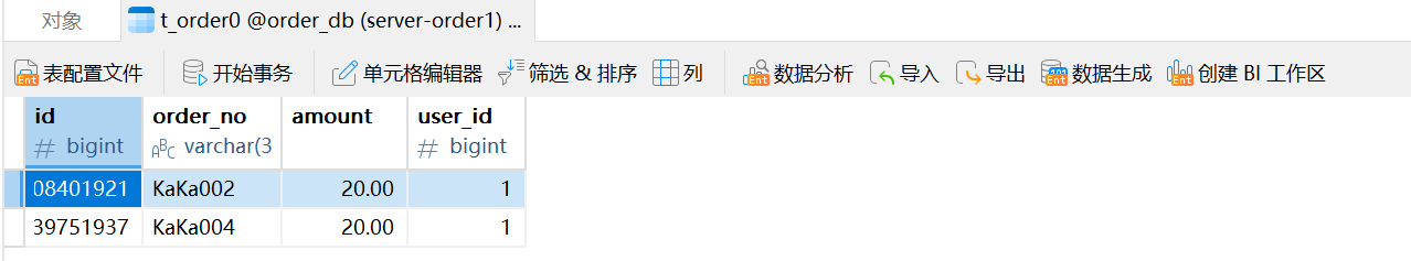insert into t_order (order_no, user_id, amount) values ('KaKa002', 1, 20.00);