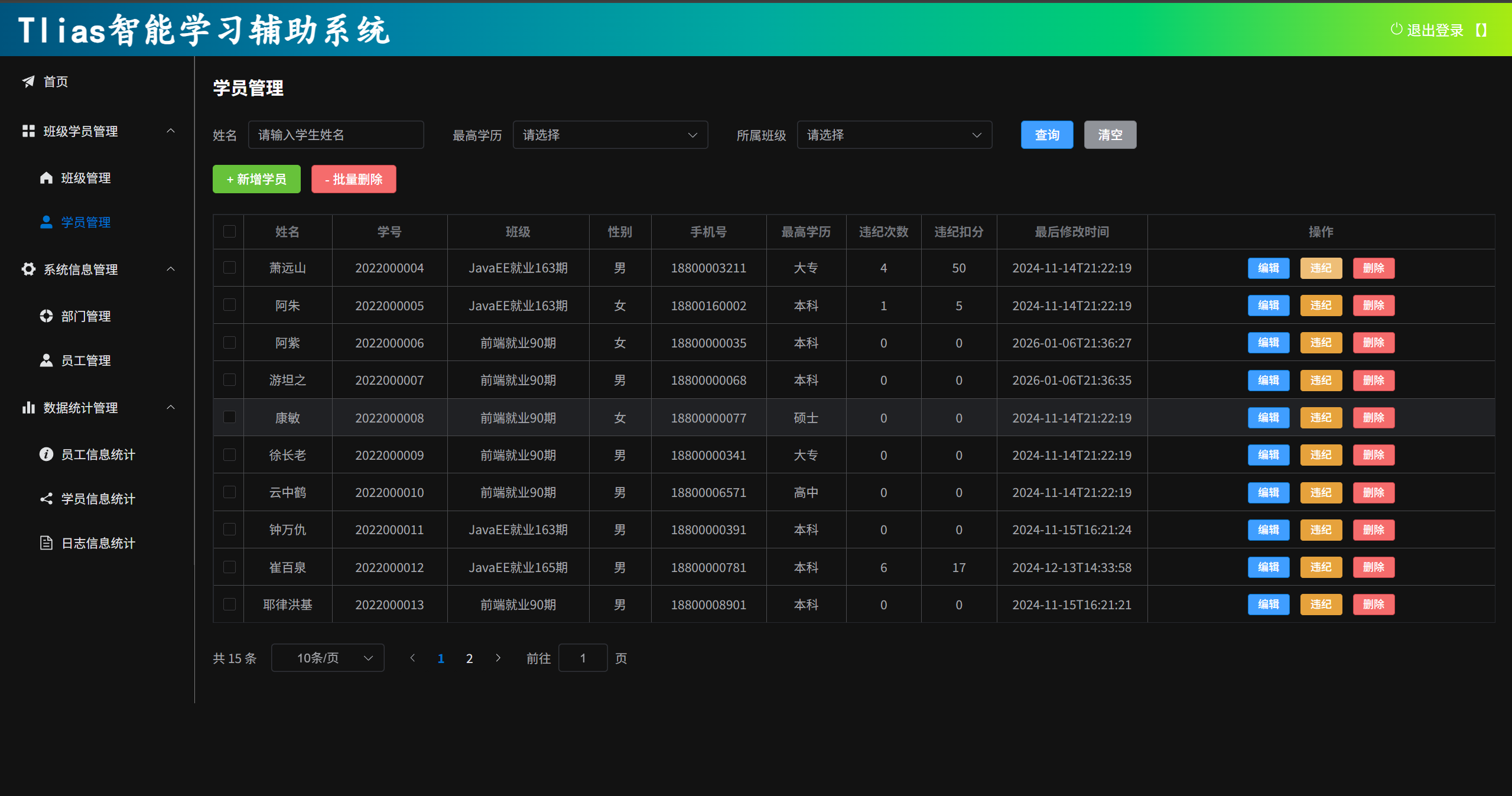 这是一个练手用的教学管理系统后端项目 ,主要用于接口层面的练习,不包含复杂业务,也不强调前端实现。项目基于黑马视频教程 ,但并非完全照抄,而是在课程框架的基础上,结合自己的理解补全和整理,目的是把一个相对完整的三层结构真正跑通。