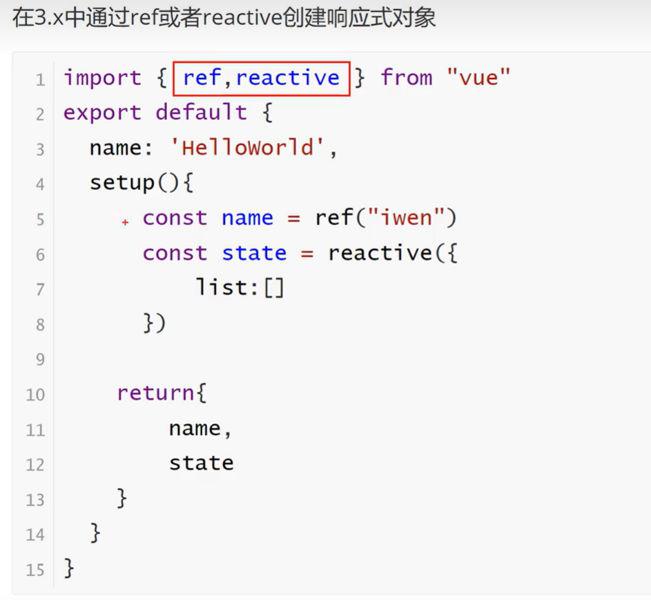 用ref和reactive定义响应式数据,ref可以定义字符串等类型,reactive可以定义对象。