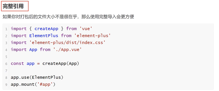2.1 完整引入,但是项目文件会很大(在main.js中引入)
