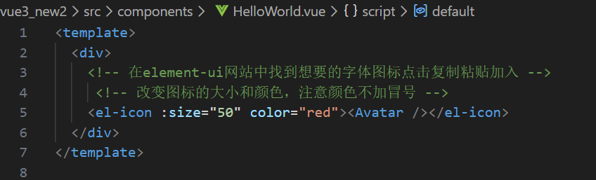 4.想使用饿了么UI库里的字体图标,首先要先在项目中下载字体图标:npm install @element-plus/icons-vue