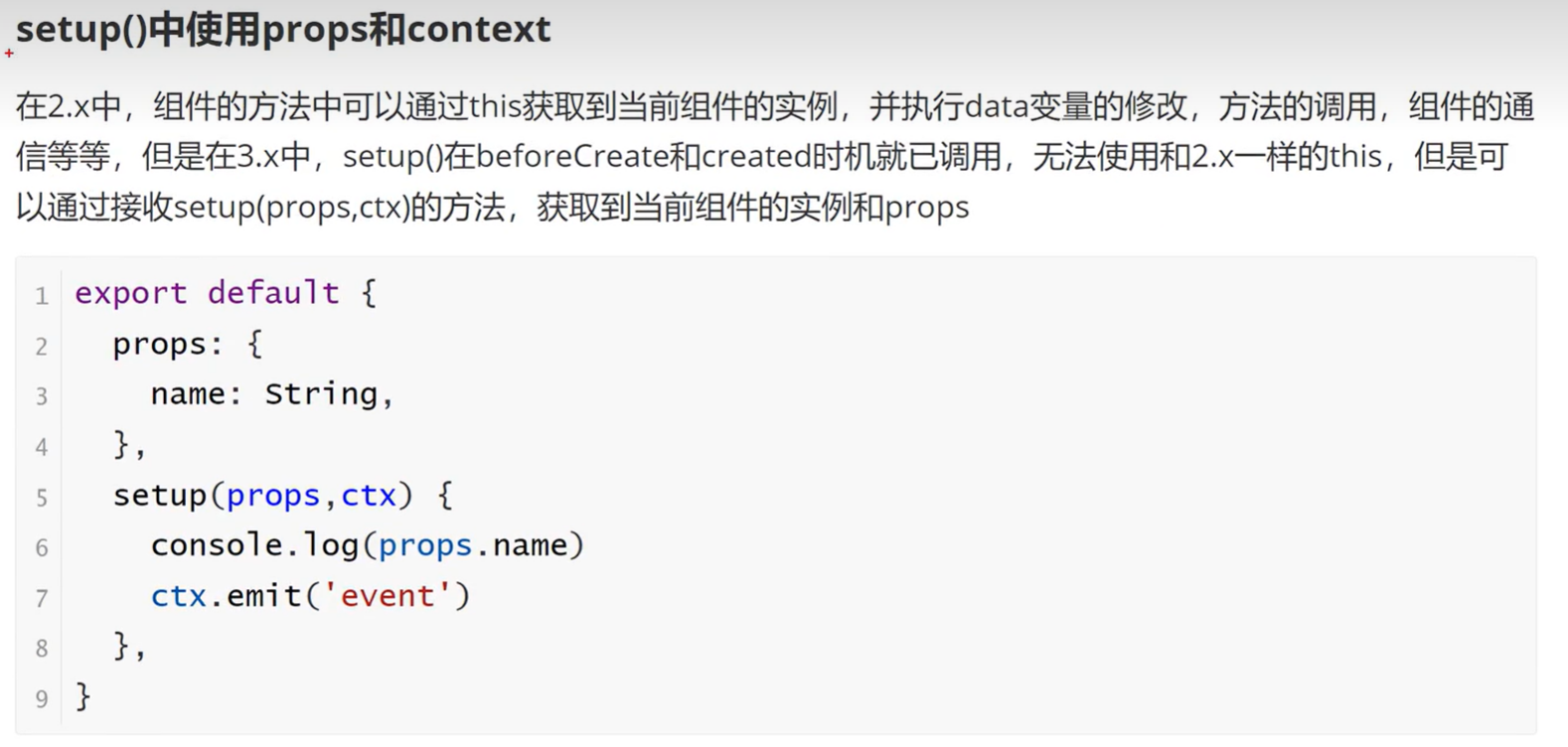 3.setup()中使用props(组件传递数据)和context(当前对象)