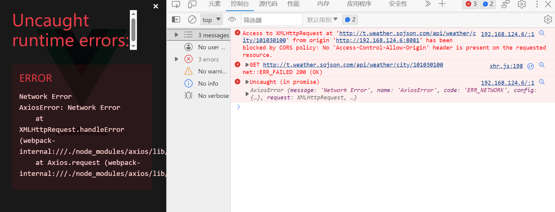 解决方法:在config里加入产生跨域的域名,然后删去aioxs.get里地址的域名,然后再启动终端即可解决。