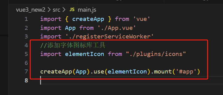6.在main.js中添加图标字体库的工具,这是和前边引入其他组件的不同之处: