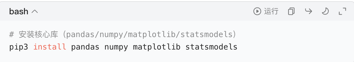 以下代码是 "纯季节性差分" 的极简版(聚焦核心),每一行都加了详细注释,你可以直接复制运行: