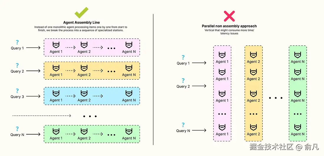这就是 代理装配线(Agent Assembly Line) 架构之所以重要的原因,这种模式将重点从最小化时延转移到最大化吞吐量。