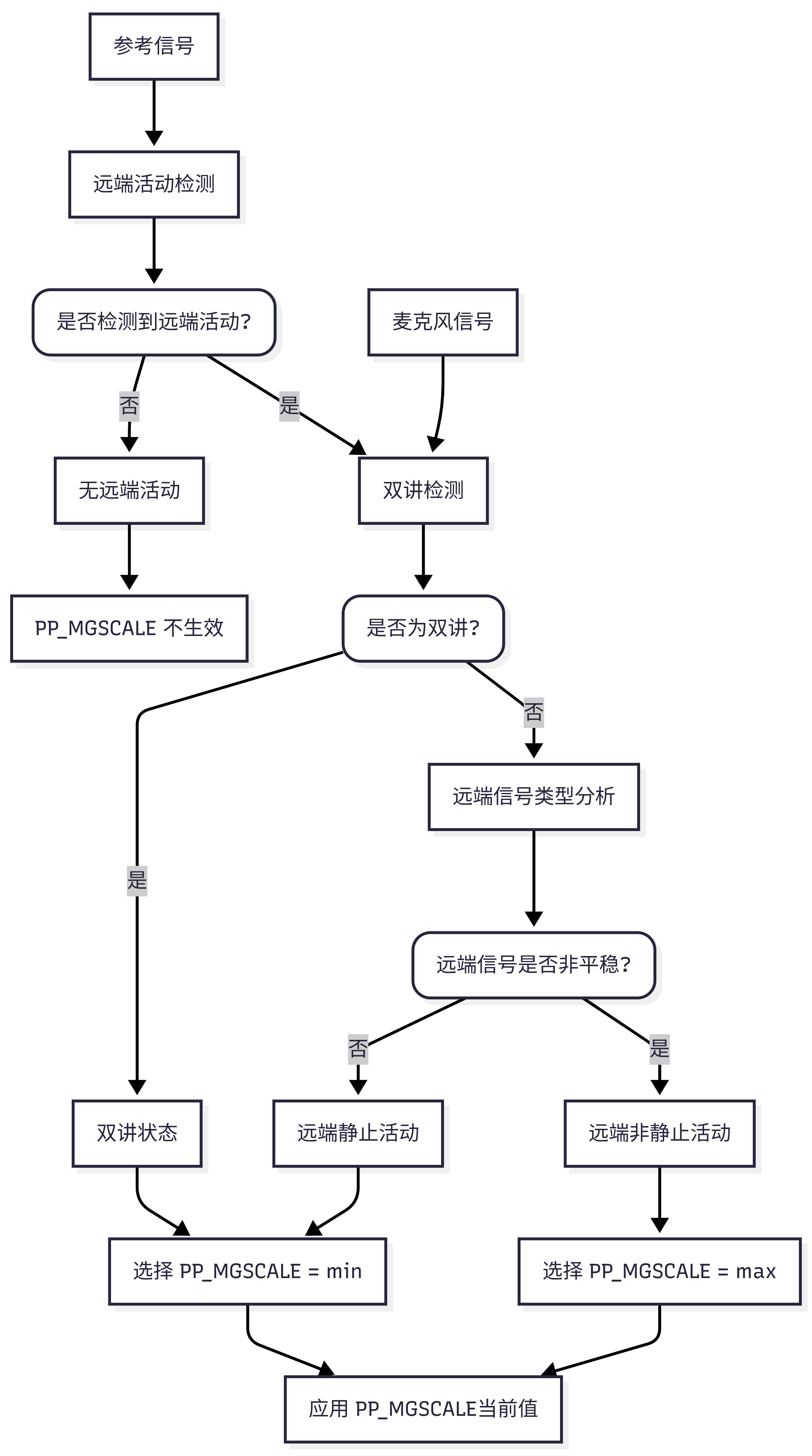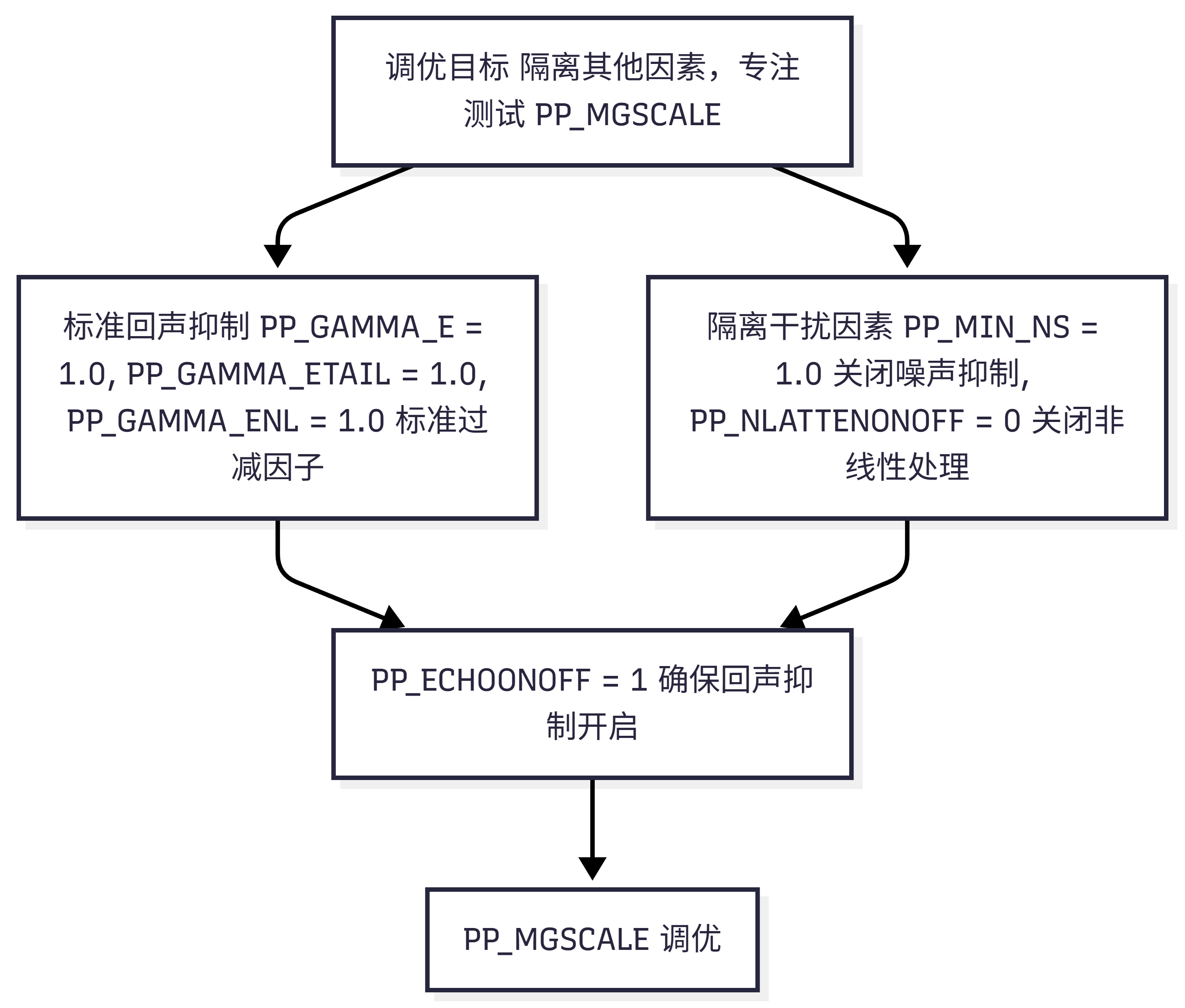 | PP_MIN_NS | 静止噪声抑制增益下限 | 调优时设为 1.0 以隔离影响 |