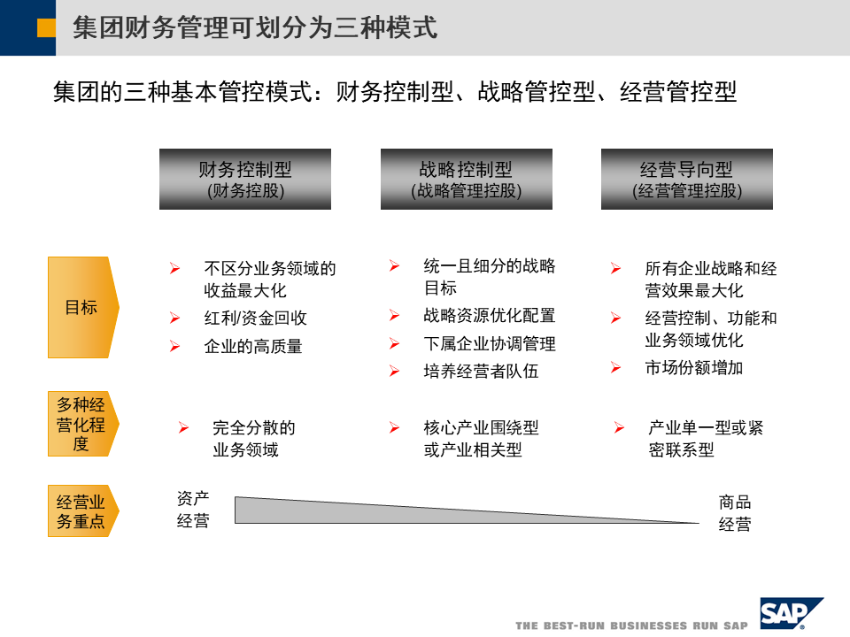 一、集团财务管控的三大模式