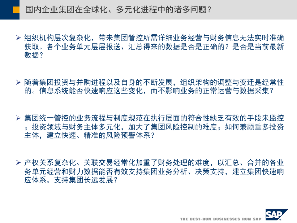- 组织机构层次复杂化:导致集团管控所需详细业务经营与财务信息无法实时准确获取[6][10]。