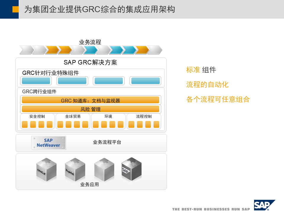 - GRC综合集成应用架构:为集团企业提供治理、风险管理和合规解决方案,支持全球财务管理重心转移[11]。