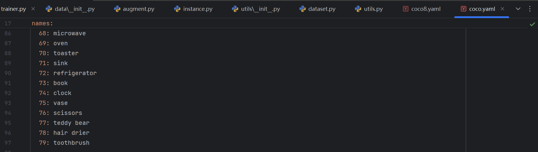 后续工作就是遍历每张图片中的标签,检查是否有训练任务所需要的标签,有则保留相关标签信息,没有则丢弃。