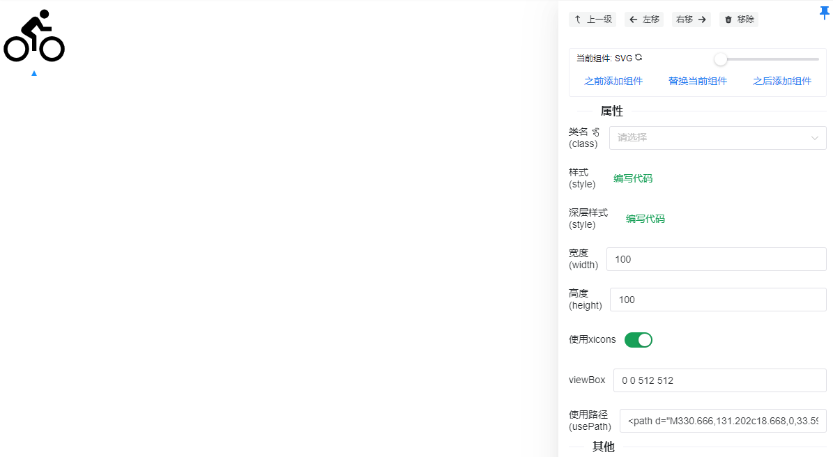 启用使用 xicons选项, 并在 使用路径 中填入 svg 的path内容。