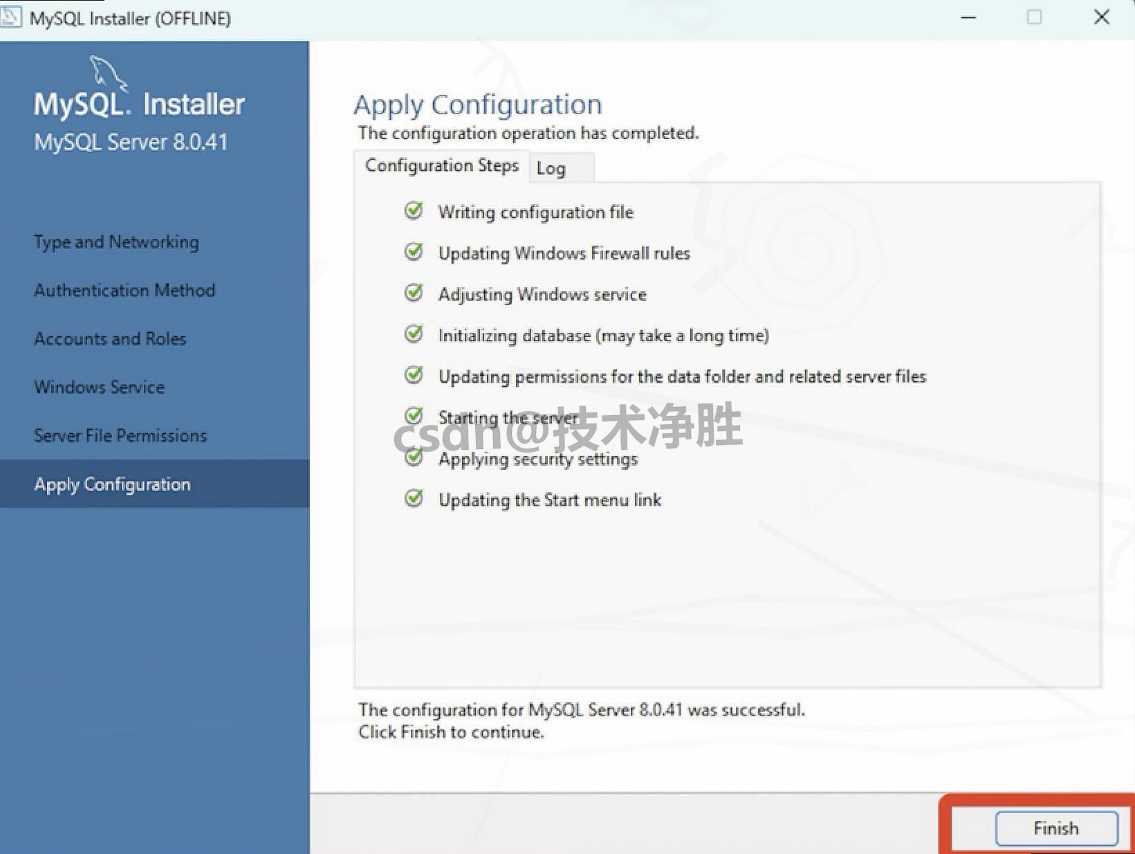 - 回到 "Product Configuration" 页面,点击 "Next",最后点击 "Finish",MySQL 8.0.41安装完成。