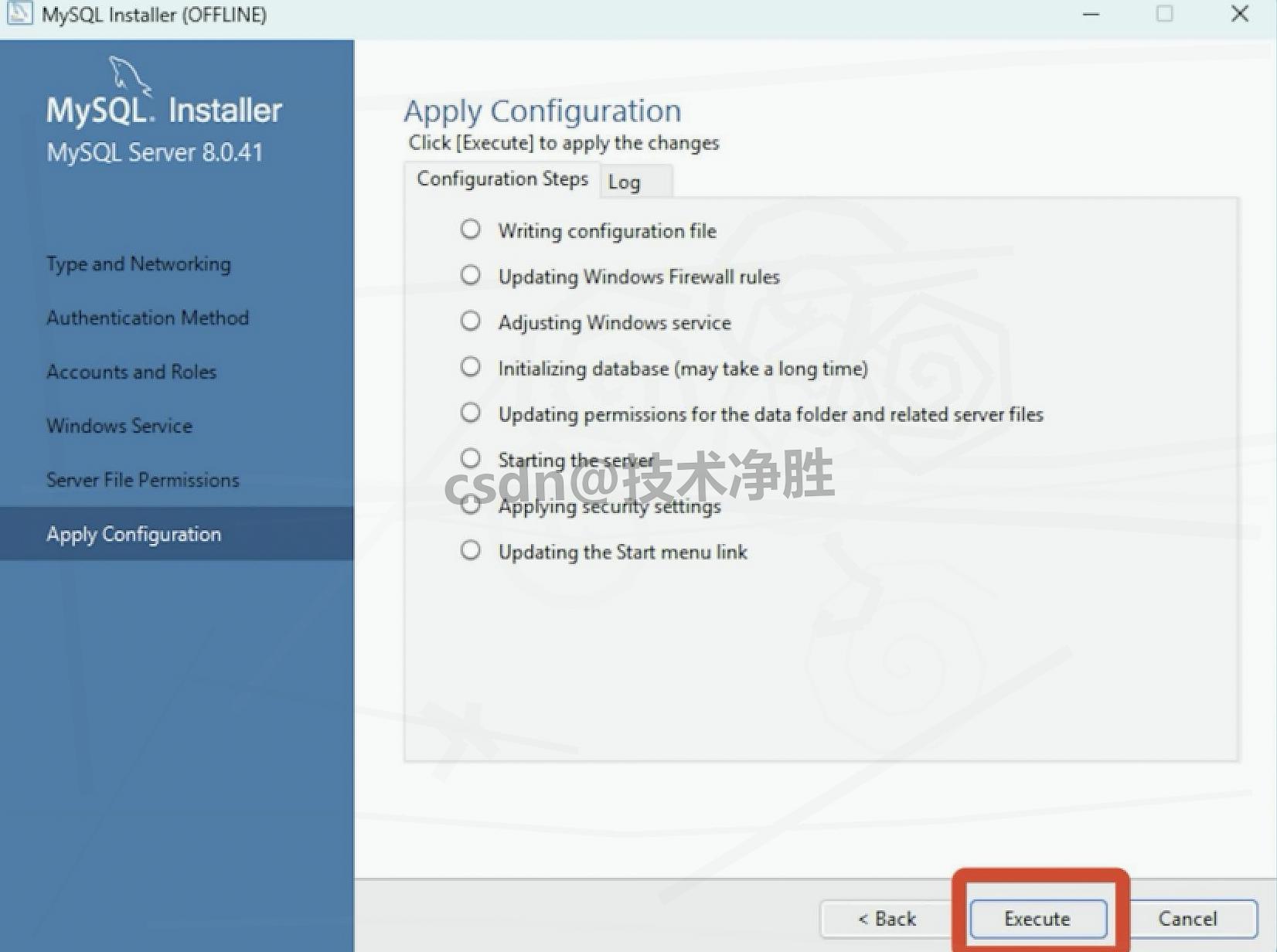 - 进入 "Apply Configuration" 页面,点击 "Execute" 开始应用配置(包括初始化数据库、注册服务等),等待所有配置项显示 "Complete",点击 "Finish"。