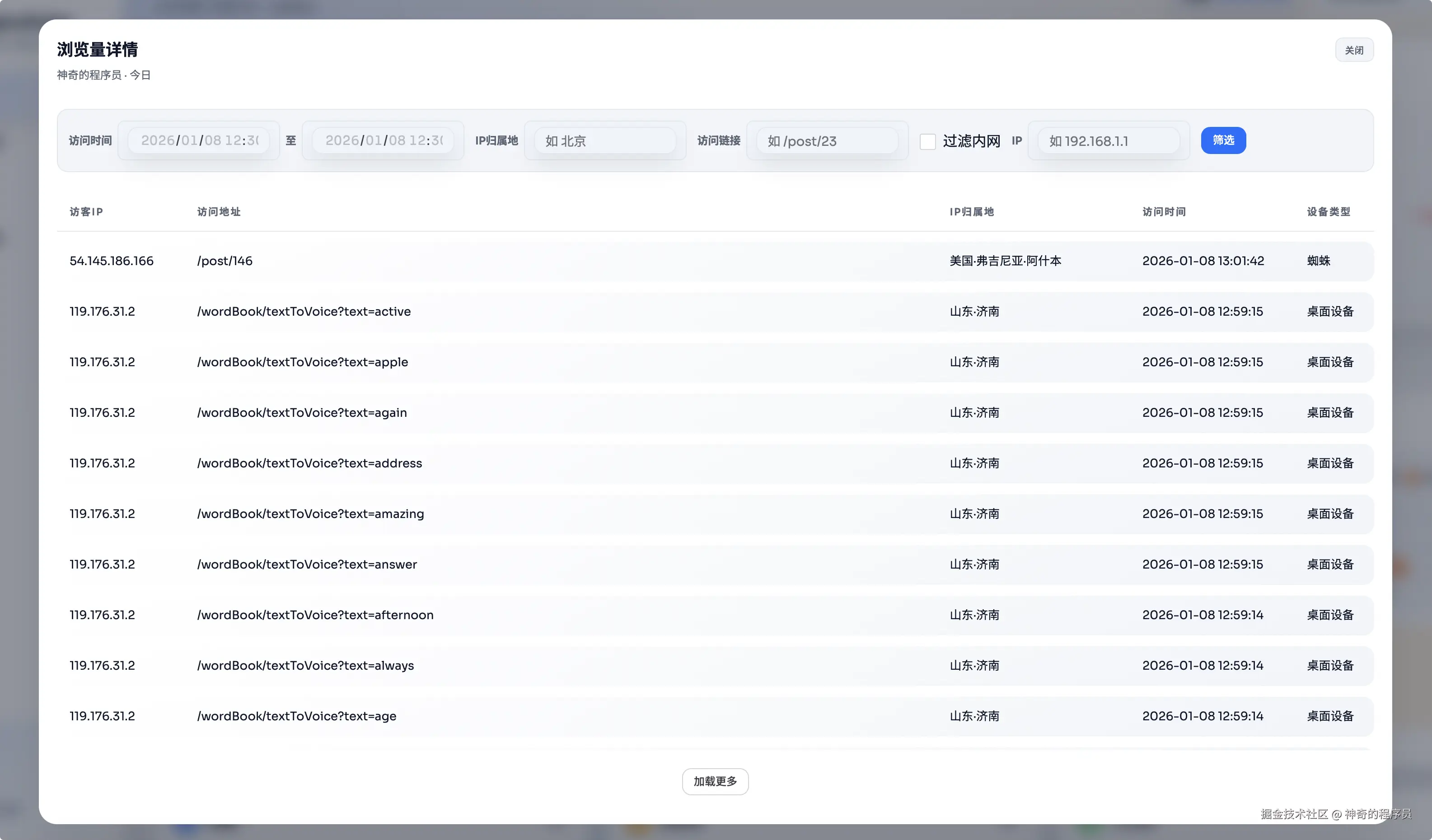 这个模块就以表格的形式展示每一条日志。