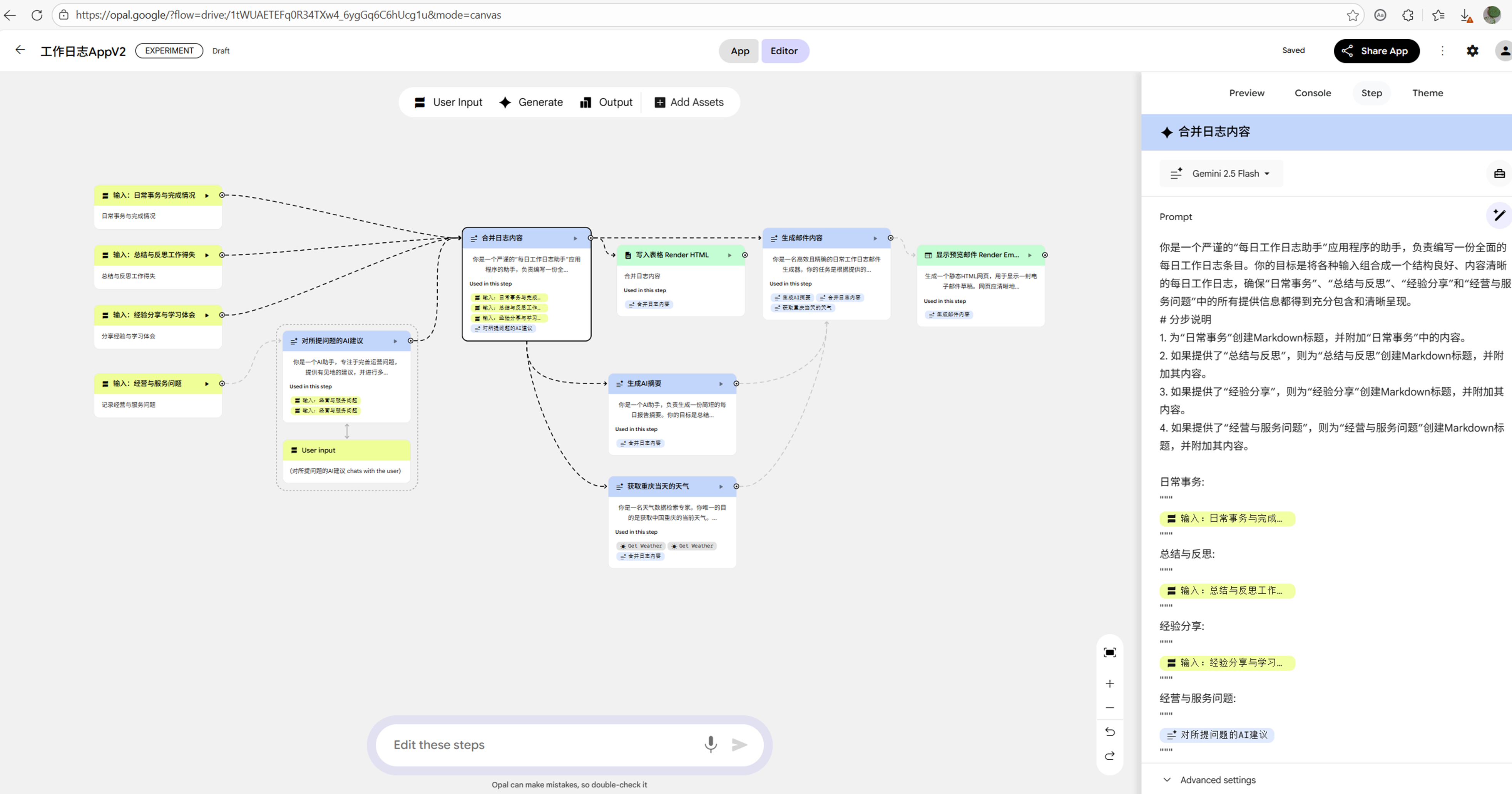 Opal 的设计初衷,是想进一步发挥自家各种大模型的能力,将大模型强大的思考能力,转化为人人可用的自动化小工具。