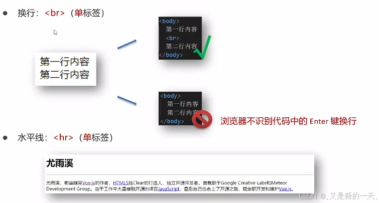 语法:需要包裹内容的:双标签,不需要包裹内容的:单标签