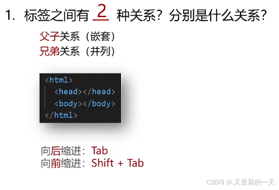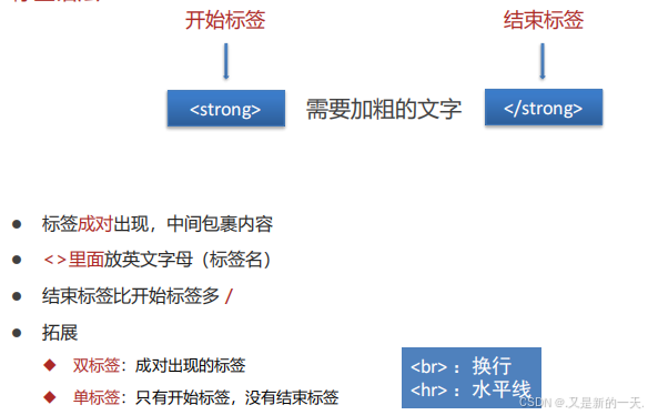 - 标记是什么?标记也叫标签。带尖括号的文本
