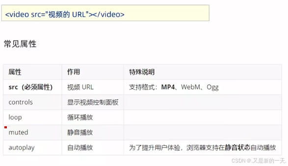- 在 HTML5 里面,如果属性名和属性值完全一样,可以简写为一个单词(如controls/loop)