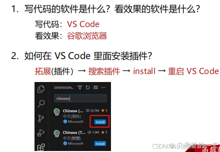 - 分析内容--->写代码--->保存--->刷新浏览器,看效果