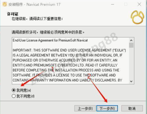 在阅读许可界面,记得勾选【我同意】选项,然后点击【下一步】。这个小细节很容易忽略,我第一次就是没勾选,结果无法继续安装。