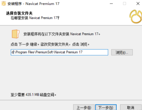 接下来需要选择 Navicat 17 的安装位置。这里有个小坑是我无意中发现的:安装路径最好不要包含中文字符,否则可能会出现各种奇怪的问题。我一般会选择安装在 D 盘或 E 盘的英文目录下。