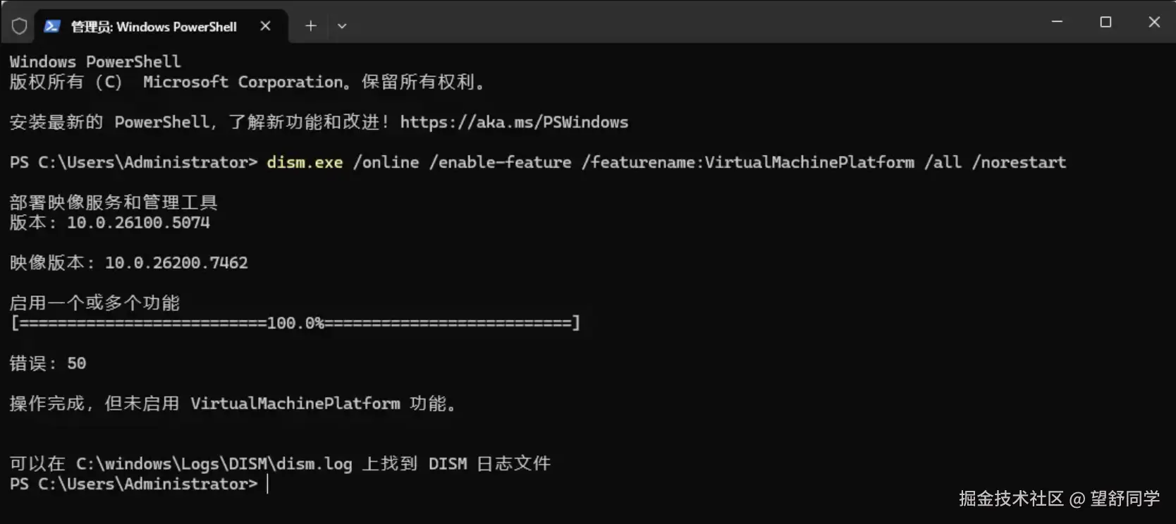 - 换个思路,用管理员身份打开PowerShell,试着用命令开,结果还是失败...