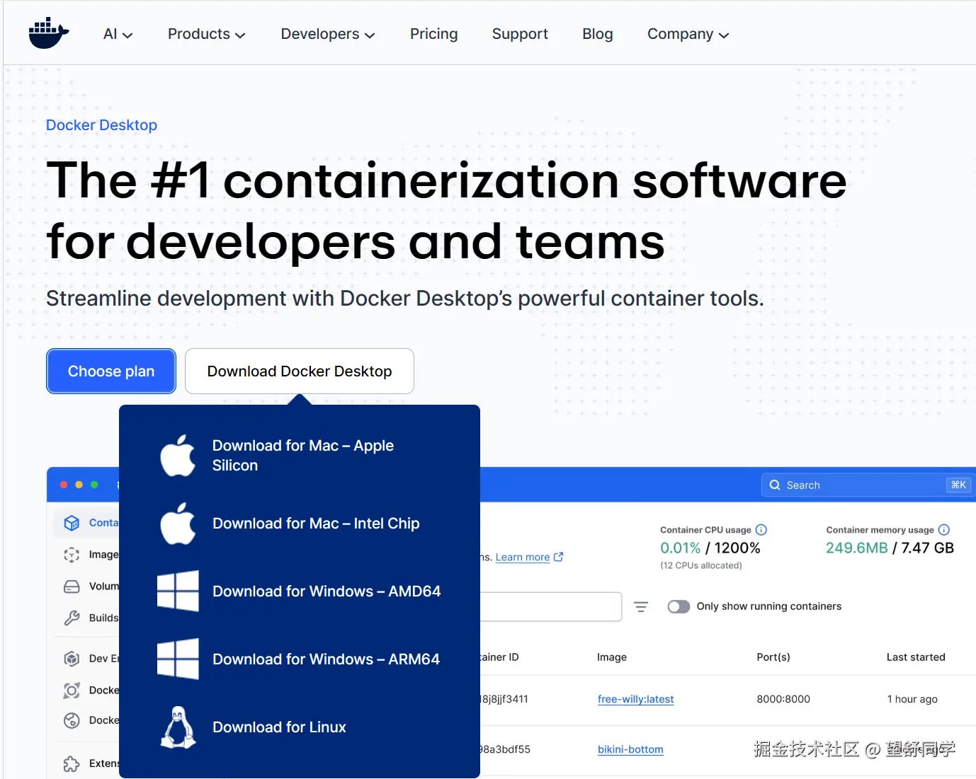 部署项目得先有Docker环境,第一步先去Docker官网下安装包就行。