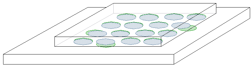 本示例演示如何检查两个重叠焊盘放置实例 之间的对齐情况。在此场景中,一个芯片堆叠在中介层上,需确保焊盘的错位不超过 0.1 微米。