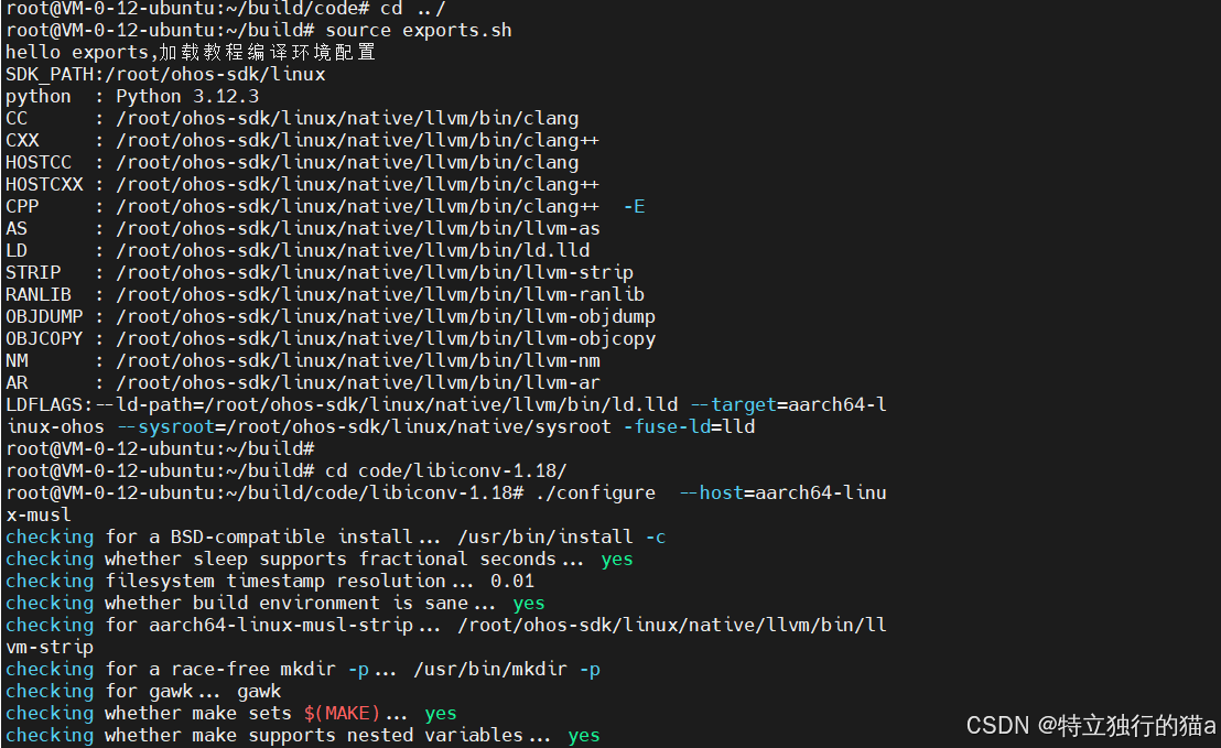 --host=aarch64-linux-ohos \ # 指定目标平台三元组