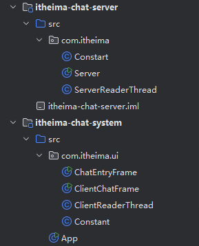 javaimport com.itheima.ui.ChatEntryFrame; import com.itheima.ui.ClientChatFrame; public class App { public static void main(String[] args) { new ChatEntryFrame(); //启动登录界面; } }