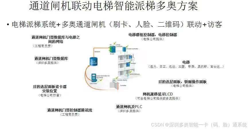 这份清单涵盖了从管理中心、前端识别、电梯控制到访客联动的完整闭环。为了让你更清晰地理解和核对,多奥将这份清单进行了结构化整理和补充说明,分为管理中心、前端识别、电梯控制核心、网络辅助及访客系统五大板块。