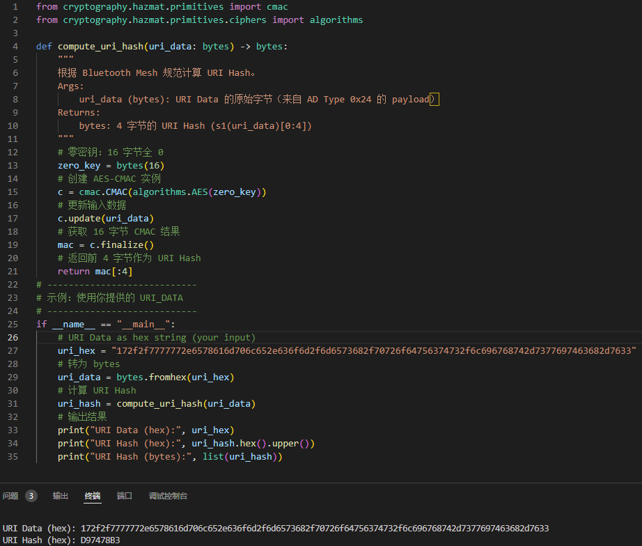 根据 Bluetooth Mesh 规范计算 URI Hash。