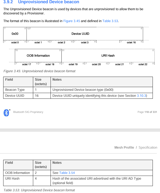 mesh标准文档对Unprovisioned Device beacon 的描述如下: