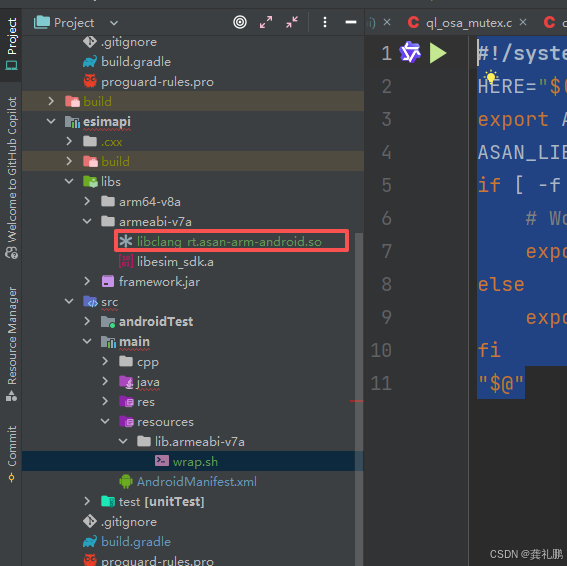 4.找到asan的动态库,和其他动态库一样集成到项目中