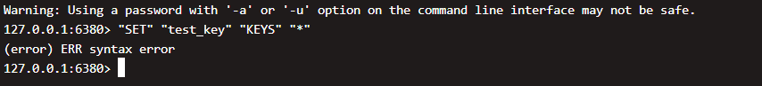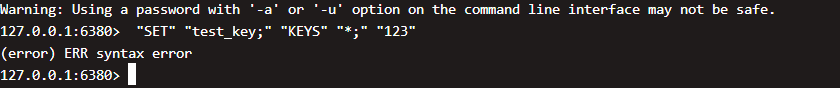 可以看到他把这个命令拆分成了多个参数,接着在redis中直接执行这个命令发现报语法错误,所以注入的redis命令无法执行或生效,就是没有注入成功。