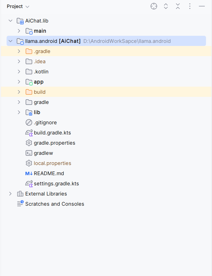 我将llama.android提到llama.cpp同级目录了,这样方便定制和代码维护